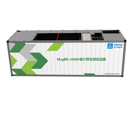 2、在液位控制器的控制下,污水被定量提升至MagBR-SMBR磁介质生物反应器设备中,污水通过厌氧、兼氧、好氧生化、化学除磷等反应得到净化,然后被自吸泵通过膜内部抽吸出来,水中的微生物和悬浮物等被拦截下来,再通过紫外消毒后达标排放。